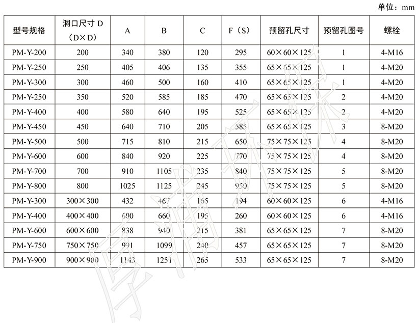 產(chǎn)品規(guī)格及外形尺寸預留孔尺寸表